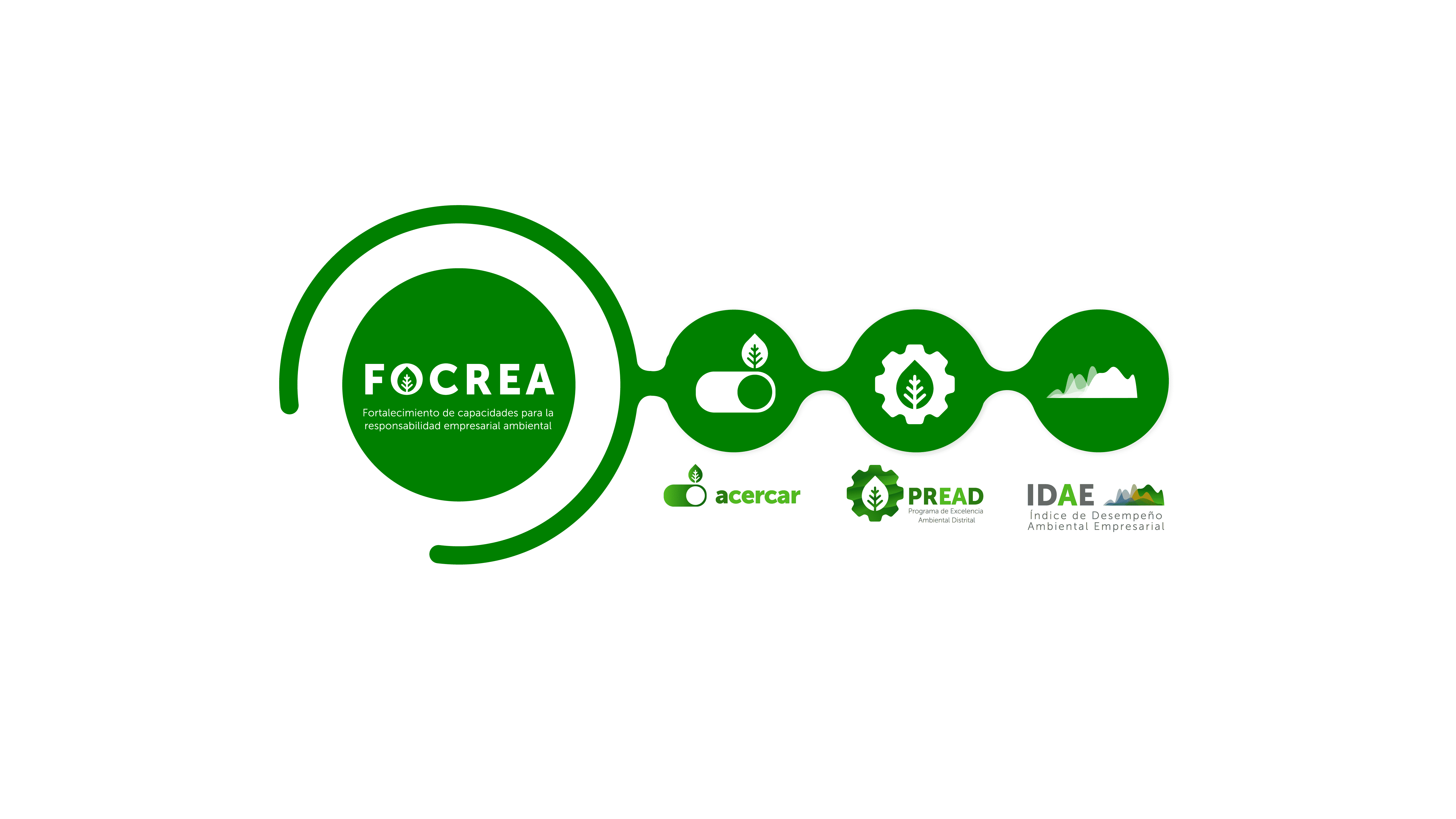 El FOCREA integra el programa Gestión Ambiental Empresarial y corresponde al mecanismo de fortalecimiento de capacidades en responsabilidad empresarial, integrado por ACERCAR y el Programa de Excelencia Ambiental Distrital (PREAD). Transversal a ellos se aplica el Índice de Desempeño Ambiental Empresarial (IDAE) que mide el mejoramiento ambiental que van logrando las empresas en su participación con la medición de indicadores ambientales soportados en los consumos de agua, energía eléctrica y térmica y la generación de residuos peligrosos.