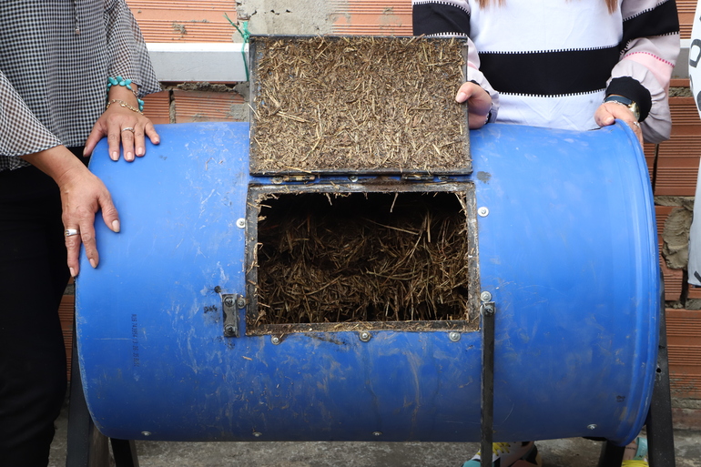 No es un trabajo sencillo. Al contrario, requiere toda la paciencia y la fuerza que tienen estas seis mujeres cuando se unen para trabajar. Todos los días, sin falta, se reúnen en una terraza, donde tienen su compostera, para darle vueltas y vueltas y así preparar el abono.