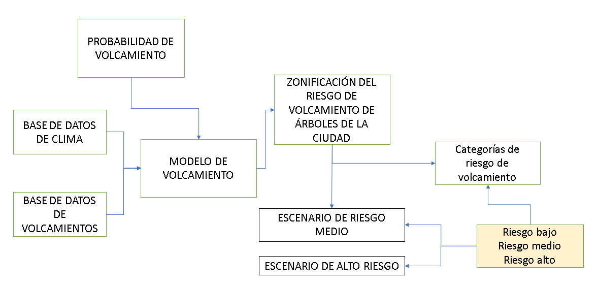 Para esto, la investigación considerará el efecto del clima (precipitaciones - vientos fuertes) junto con aspectos biomecánicos de las especies con el fin de generar un modelo biometeorológico que permita definir el riesgo de volcamiento con base en diferentes escenarios posibles y generar los lineamientos para el diseño y establecimiento futuro de un Sistema de Alerta Temprana de Volcamiento de árboles en la ciudad de Bogotá.
